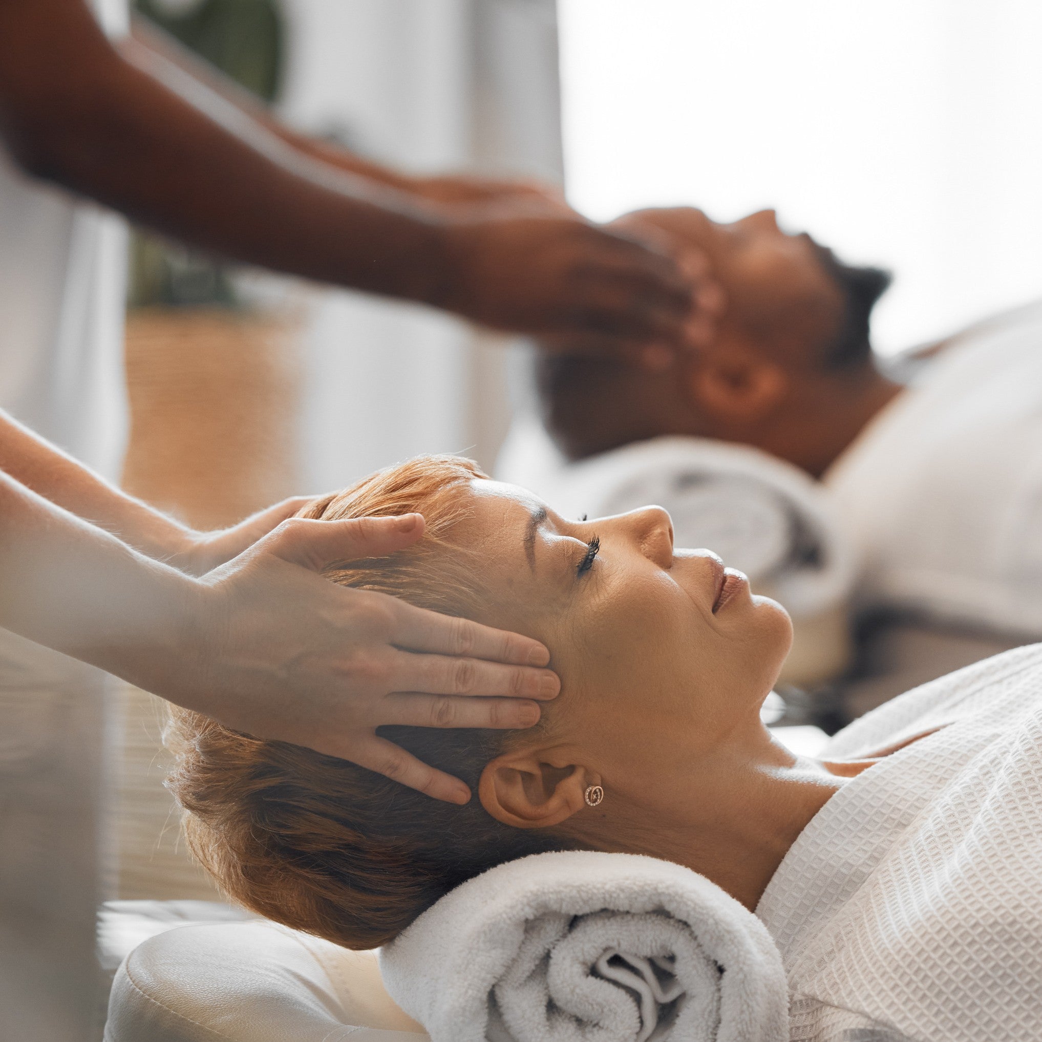 You and your partner will each have a massage therapist working on your body at the same time, side by side on separate tables. Therapists will use synchronized techniques tailored to your individual needs, ensuring a harmonious and relaxing experience for both.